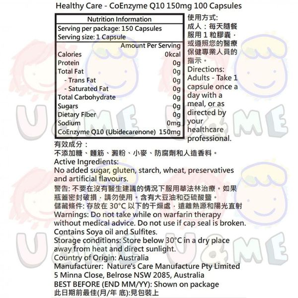 Healthy Care-輔酶Q10膠囊 150mg 100粒 (平行進口貨)