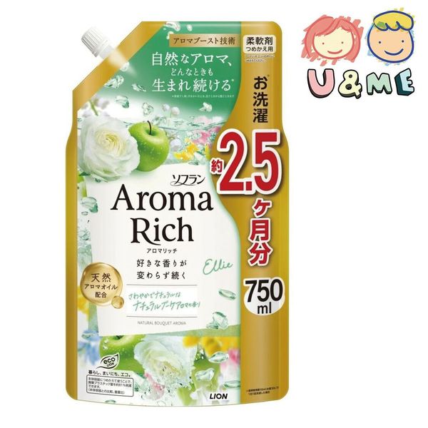 LION - AROMA RICH Fabric Fragrance Softener Refill 750ml Ellie Natural Floral Scent (Parallel Import)