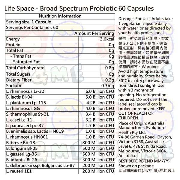 life-space-益倍適成人廣譜全效腸道益生菌 60粒膠囊 (平行進口貨)