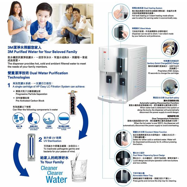 雙重潔淨技術,一按即享冰水、常溫水、熱水,節省等待加熱後再冷卻的時間。