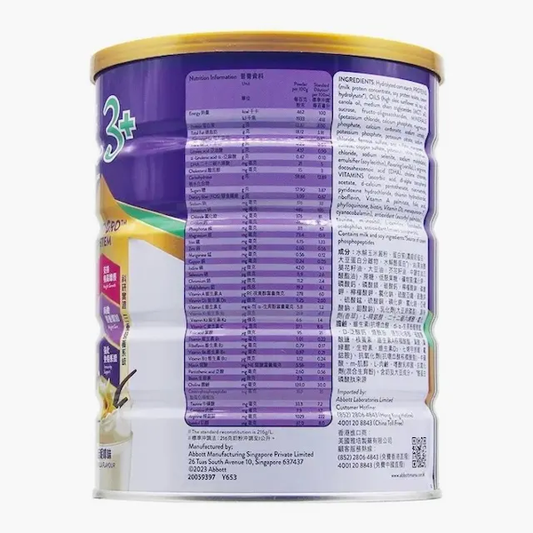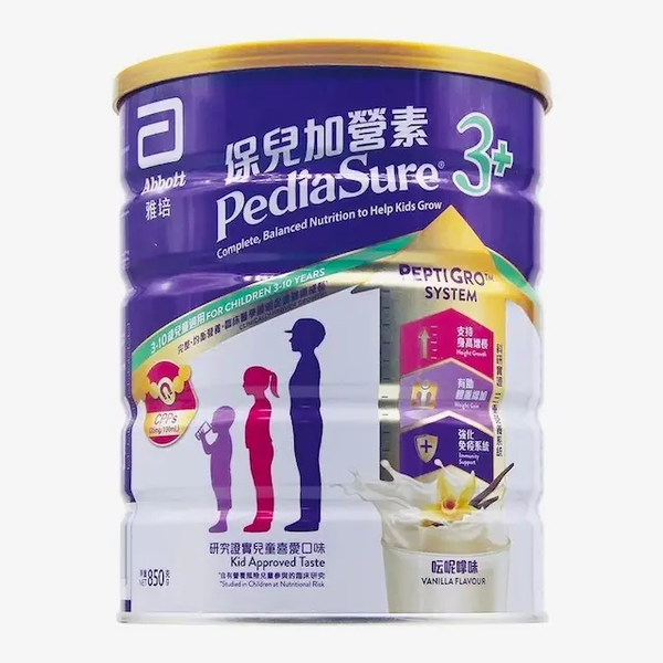雅培港版保兒加營素呍呢嗱味3+ 兒童助長營養粉 香草味 850g *4罐 3-10歲適用 (香港原裝)
