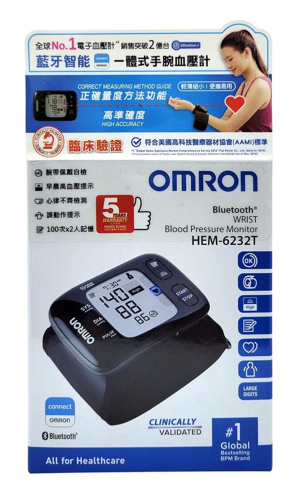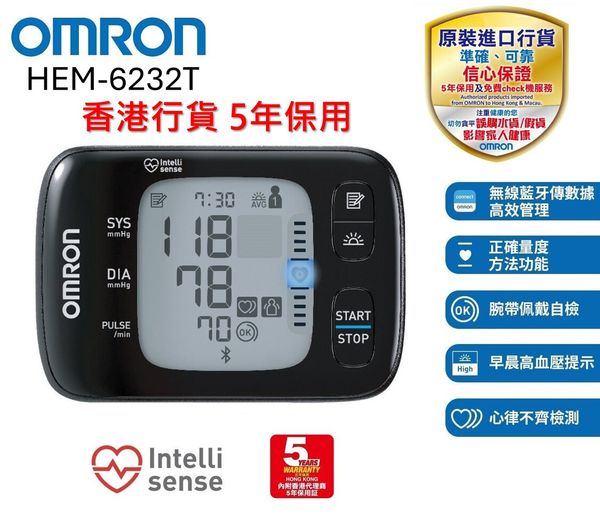 OMRON 歐姆龍 HEM-6232T 藍牙手腕式血壓計 (香港行貨 5年保養)