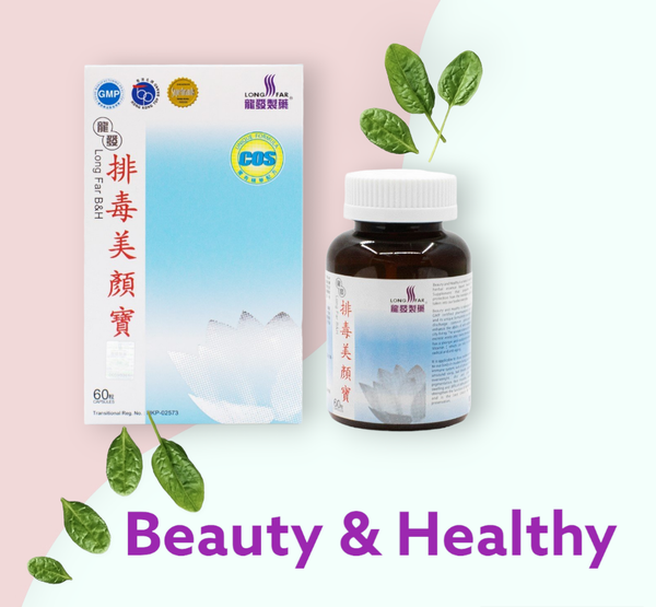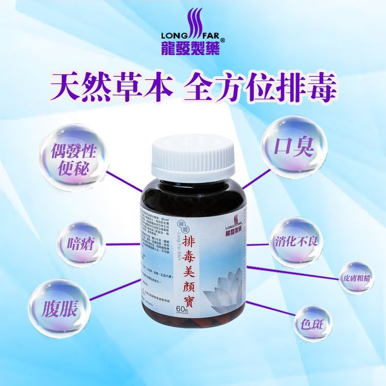 龍發製藥-排毒美顏寶 (60粒/樽) 腹脹、口臭、皮膚粗糙、色斑、偶發性便秘