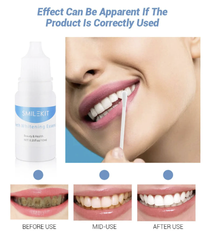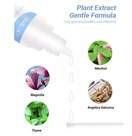 方便使用:Smile Kit牙齒美白精華露非常容易使用。您只需將適量的精華露塗抹在牙齒表面,輕輕按摩幾分鐘,然後用清水漱口即可。它不需要長時間的使用,每天使用一次即可為牙齒提供護理和美白效果。