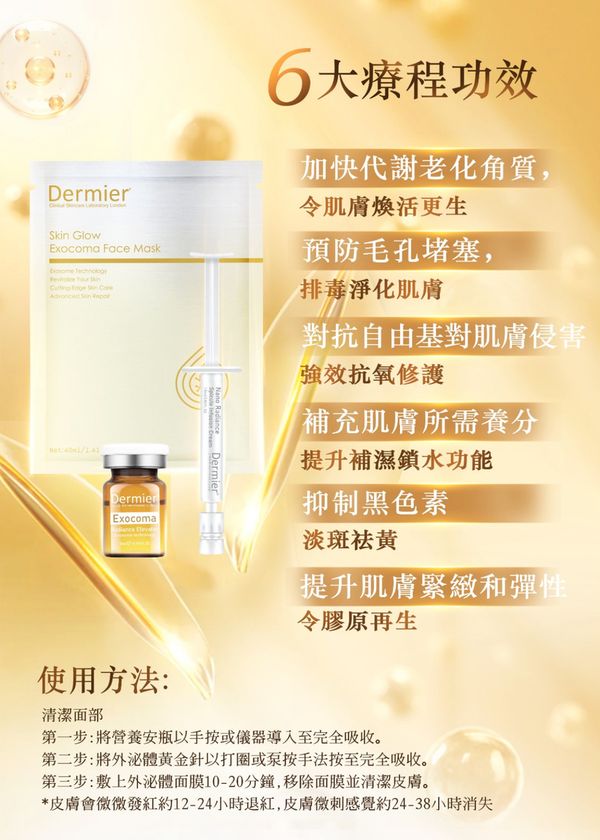 第三步:敷上外泌體面膜10-20分鐘,移除面膜並清潔皮膚。
