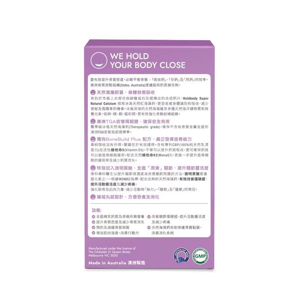 Holdbody 超級天然鈣 60粒(紫色)#Plus+透明質酸#冰島海藻鈣
