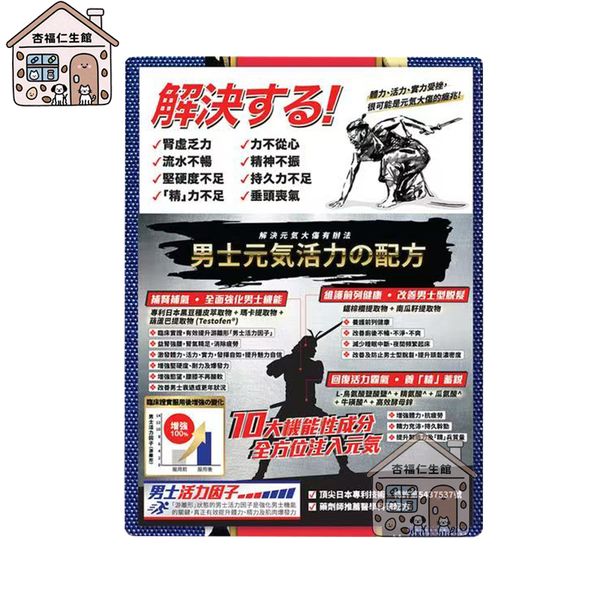 1 男士30歲後身體機能 (男性元氣) 按年遞減,腎力不足,無論體力、活力、持久力、實力亦續漸下降,同時前列風險隨之增加,大大削減魅力和自信。