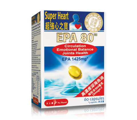 魚油含有多種奧米加3不飽和脂肪酸(Omega-3),其中包括EPA、DHA、ALA及SDA等,它們皆為必需脂肪酸。由於身體不能自行合成,所以必須從飲食攝取。 超強心之寶 EPA 80TM由潔淨深海海域捕獲的細小沙甸魚萃取提煉而成, 每粒高濃度優質魚油含90%不飽和脂肪酸(475毫克EPA和15毫克DHA等奧米加3)。高純度的 EPA,吸收率佳,而且膠囊細小容易吞食。 產品採用法國先進高科技提煉,並由優質 GMP 藥廠生產,確保品質安全可靠。