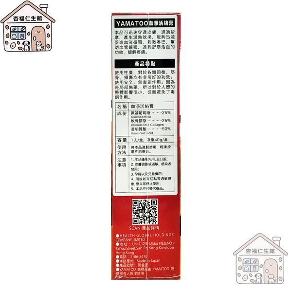 YAMATOO 血淨活絡膏 日本製造 减轻疼痛 舒缓关节 40g/盒