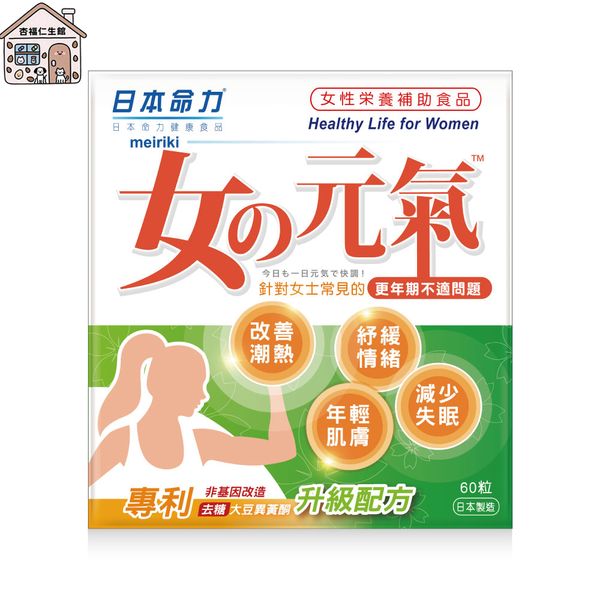 - 日本命力「女の元氣」專門針對女士更年期不適﹐4合1全效功能,讓您綻放青春、減慢衰老,是女士們擁有豐盛人生不二之選。