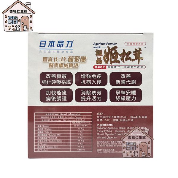 - 日本命力「極品姬松茸」含多種蛋白質及重要氨基酸、維他命及礦物質,為身體全面提供足夠的營養素,不寒不燥,是男女老幼適合的滋補佳品。