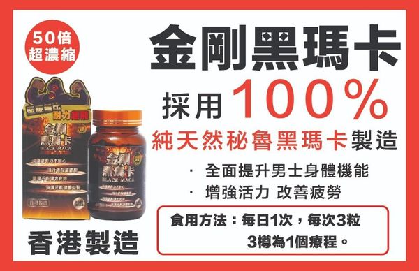 金剛黑瑪卡選用了秘魯頂級黑瑪卡為原料,100%純天然製造不含任何激素及藥物。安全、可靠、絕無副作用。配合50:1萃取濃縮精煉技術,有助提升營養價值,更易為身體吸收,為男士益精壯陽,強壯機能的聖品。黑瑪卡為瑪卡當中營養價值最高,有助激發慾望提升男性表現、提高持久力,更有效擊退疲勞及舒緩壓力、令人精力充沛,非常適合長期服用