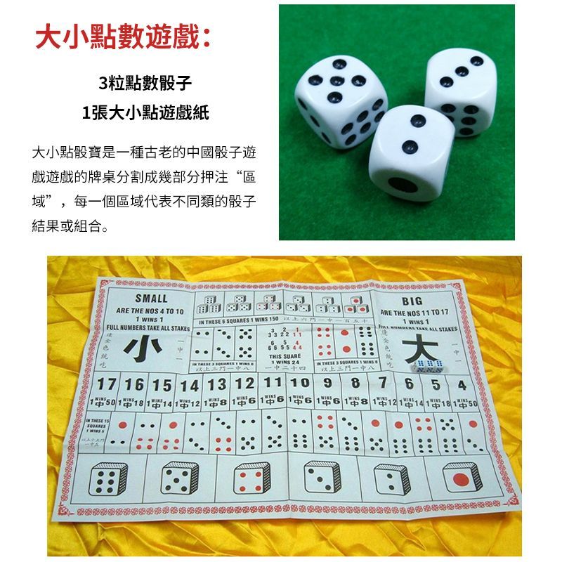 一)“猜大小”; 很簡單的一種骰盅玩法。6粒骰子一起玩,搖骰然後猜骰盒中骰子的大小數目,15點為半數,過半則大,未過半則小。
