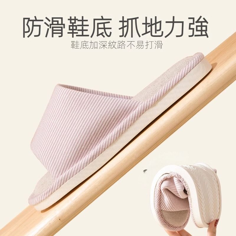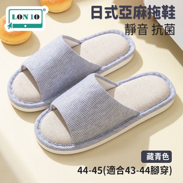 集寶-日式亞麻拖鞋男 | 居家情侶室內家用 | 靜音抗菌四季棉麻拖鞋 | 室內防滑拖鞋 | 家居拖鞋 - 藏青色 44-45(適合43-44腳穿)(LDG2)