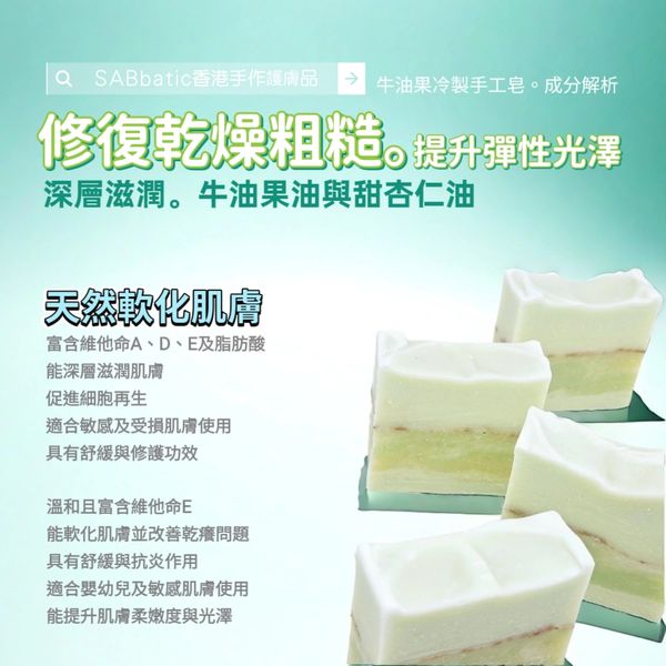牛油果冷製手工皂~60g