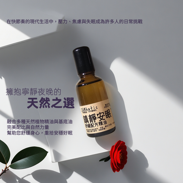 在快節奏的現代生活中,壓力、焦慮與失眠成為許多人的日常挑戰。為了讓您找回內心的平靜與優質的睡眠,SABbatic精心調配了「鎮靜安眠·舒緩配方精油」。這款精油融合多種天然植物精油與基底油,以完美配比與自然力量,幫助您舒緩身心,重拾安穩好眠。