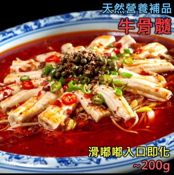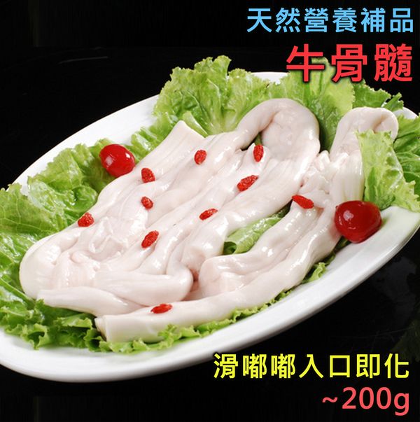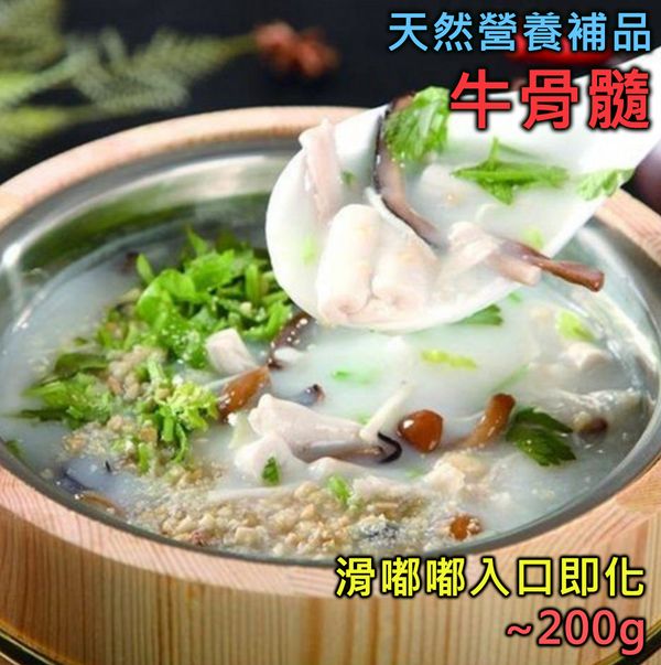 牛骨髓又叫牛脊髓,係牛科動物嘅骨髓,營養豐富,含有部分脂肪、豐富蛋白質和鈣質,而且亦含有豐富嘅骨膠原、鐵質、磷及維他命A,對補賢、促進骨骼發展、提高免疫力等都好有功效。唔講唔知,好多壯骨粉、補鈣產品所用嘅原料就係來自牛骨髓,所以牛骨髓可以話係補充鈣質的天然營養佳品。