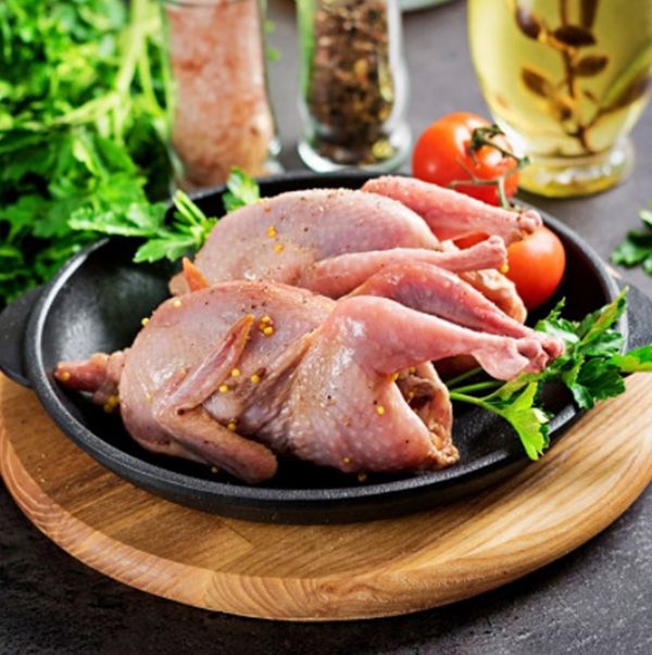*本產品經過去除內臟的程序,過程中會令到其皮下血管爆裂而積存血液,而由於本產品為體積細小的鳥類,表皮亦相對較薄,產品表面或會因此而呈見深沉紅色,此為正常現象。本產品已經過去除內臟的程序,但仍會有殘餘部分,食用前請先徹底清洗。