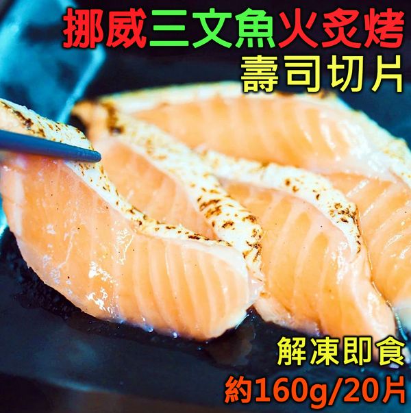尚上品 - 解凍即食!挪威三文魚火炙烤壽司切片20片 #刺身 #魚生 #壽司 #日本料理 #海鮮 (~160g) (急凍 -18°C)
