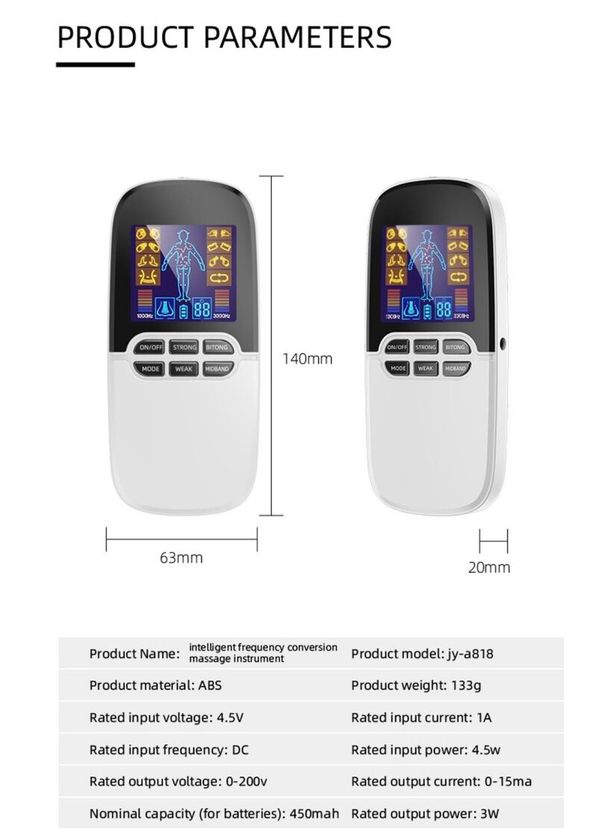 . 2擋位: 低频EMS, 中頻TENS