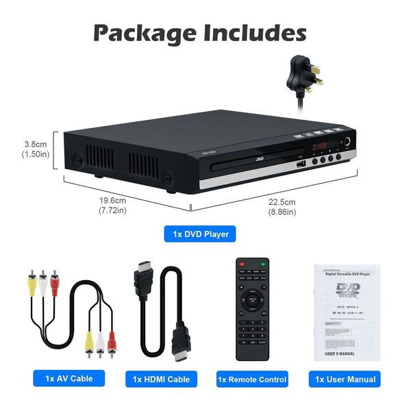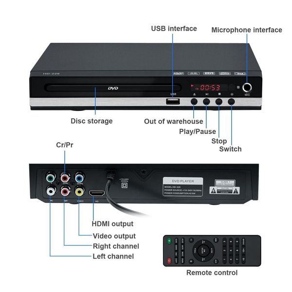- DVD 播放器僅支持最大 16BG 的 USB Flashdrive,並通過 USB 播放最大 720P 的視頻文件,不支持 USB3.0 和 MP4。