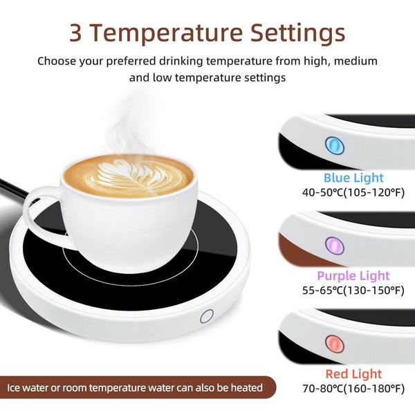 - 3段恆溫控制帶指示燈:藍色(40-50攝氏度)、紫色(55-65攝氏度)和紅色(70-80攝氏度)。當它變冷時,迅速將您的飲料加熱到所需的溫度。