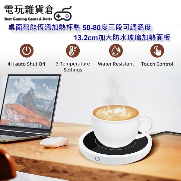 桌面智能恆溫加熱杯墊 50-80度三段可調溫度 13.2cm加大加熱面板 防水玻璃面板 暖奶飲茶保溫必備