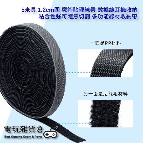 5米長 1.2cm闊 魔術貼電線整理器 理線帶 綁線帶 電線整理紮帶 數據線耳機線收納 粘合性強可隨意切割 多功能線材收納帶