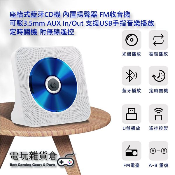 座枱式藍牙CD機 CD播放器 CD Player 內置揚聲器 FM收音機 可駁3.5mm AUX In/Out 支援USB手指音樂播放 定時關機 附無線遙控