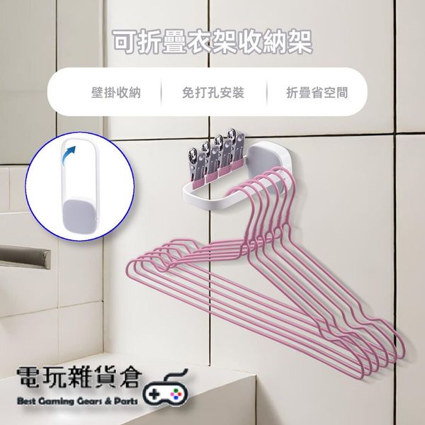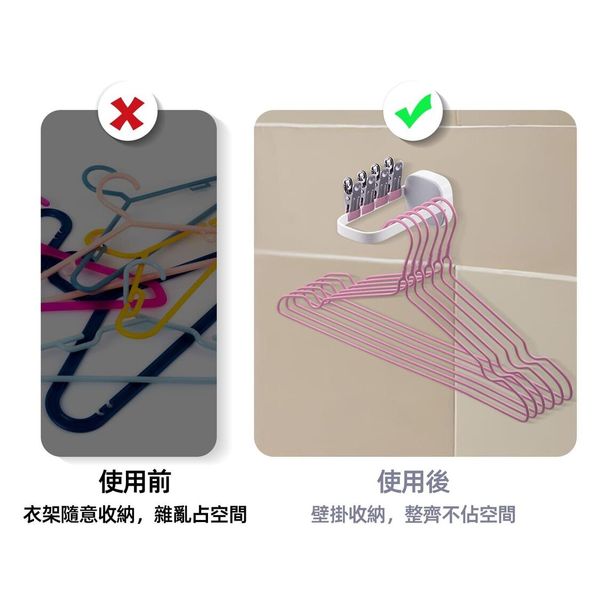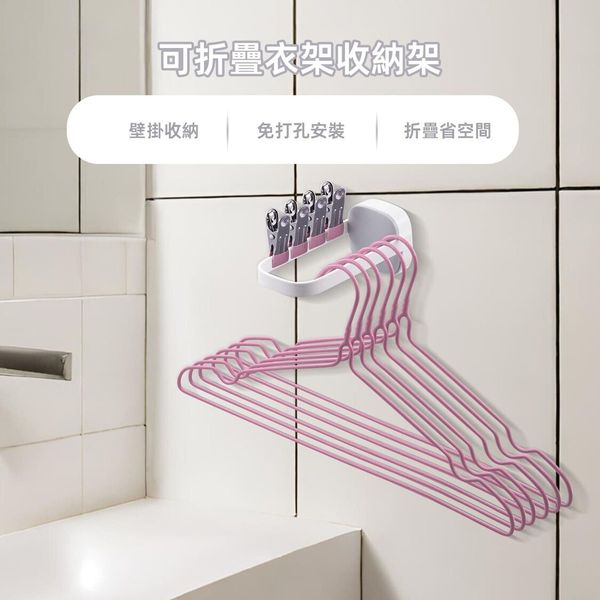 - 這款黏貼式折疊收納架是衣架和衣夾收納的完美解決方案,釋放衣櫃和洗衣房的空間,讓衣架整齊堆疊。 衣架不再混亂!