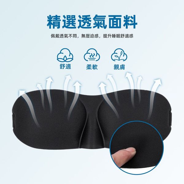 - 這款 3D遮光眼罩提供大面積覆蓋,貼合您的臉部,並防止側面漏光,幫助您安心入睡。