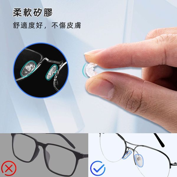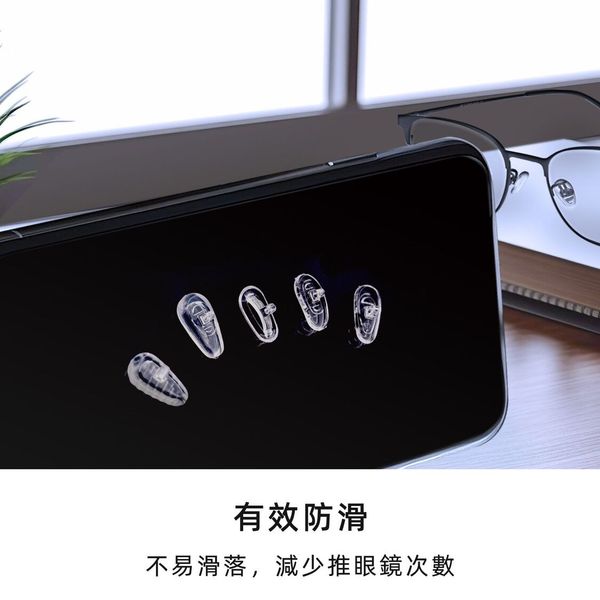- 鼻墊由優質PVC和矽膠材料製成,觸感柔軟,有效緩解框架造成的壓力,保護鼻樑。