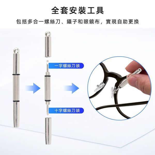 眼鏡/太陽眼鏡鼻墊更換套裝 光學眼鏡維修工具零件配件 連螺絲批工具