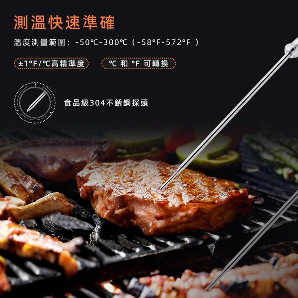 -溫度範圍高達300°C,精度為 ±1°C,可°C/°F 讀數轉換。 當達到目標溫度時,您將收到嗶嗶提示,再也不用擔心未煮熟或煮過頭了!
