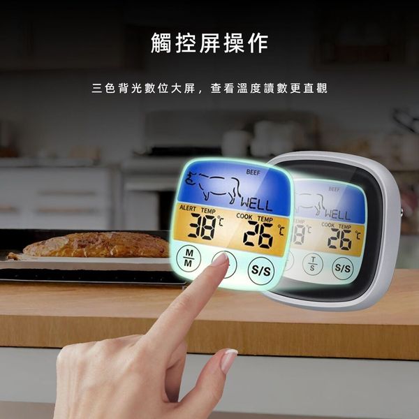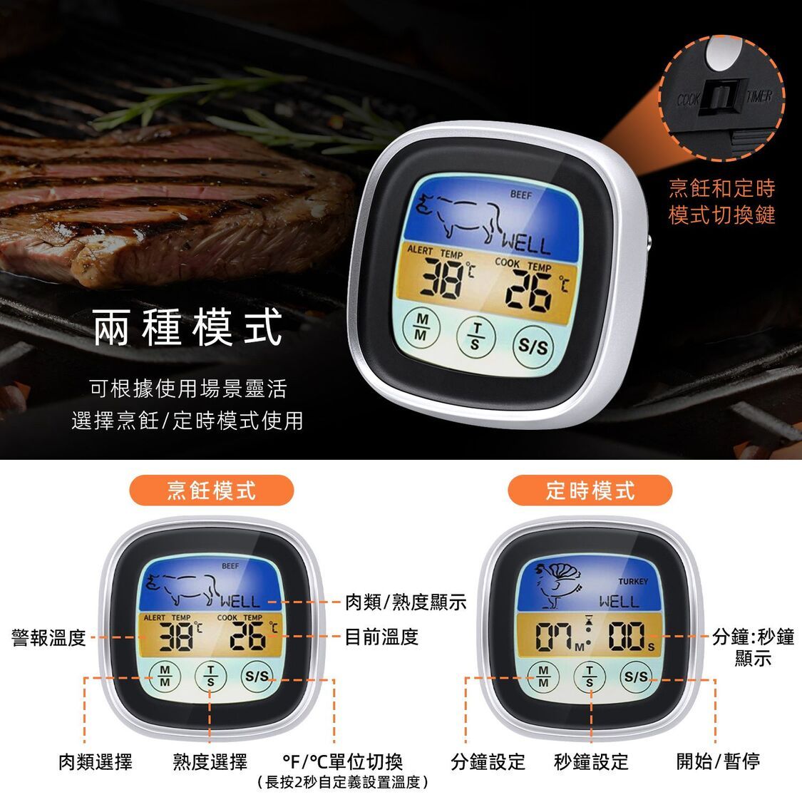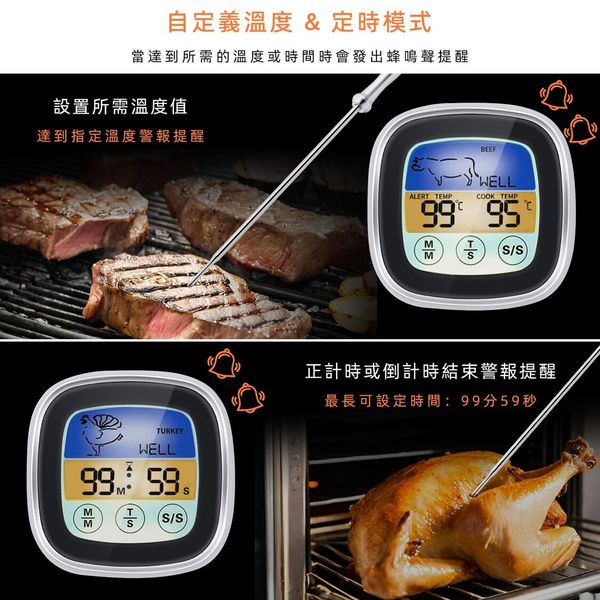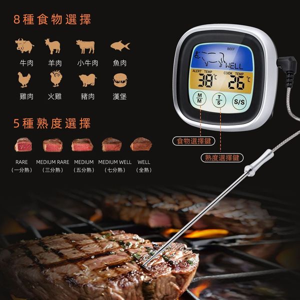 肉類烹調溫度計 焗爐BBQ燒烤煮食溫度探針 大LED顯示屏 多選肉類煮食選項 溫度提示