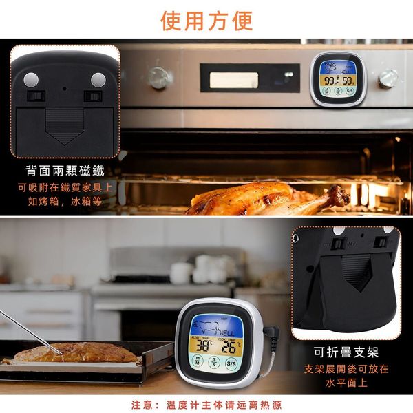-內建強力磁鐵和支架,您可以將其固定在金屬表面或烹飪台上,以便於閱讀。