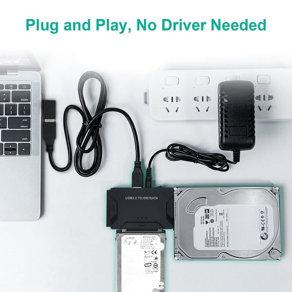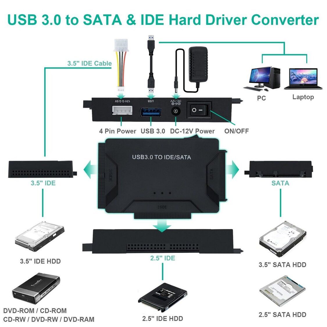 1.對於3.5" IDE驅動程序和舊的SATA HDD,您需要連接提供的12V / 2A電源適配器和4針電源線。請正確連接並在最後一步中打開USB3.0到IDE / SATA適配器的開關。
