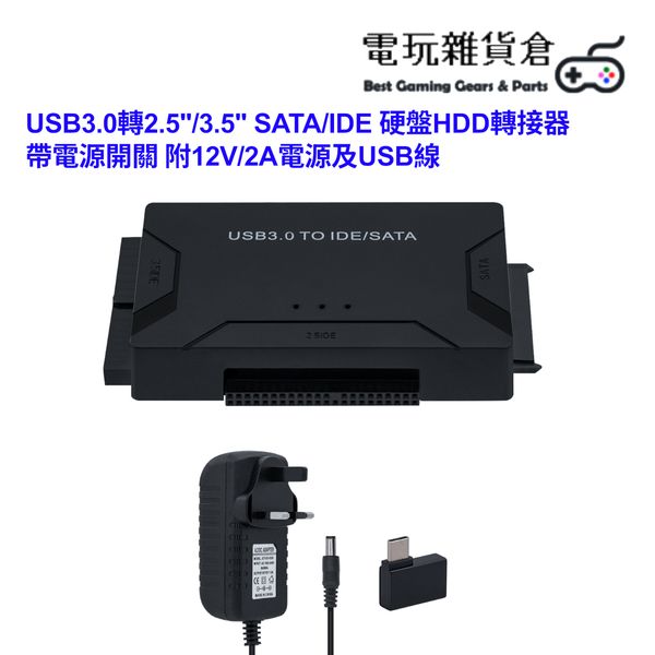 USB3.0轉2.5"/3.5" SATA/IDE 硬盤HDD Hard Drive 轉接器 帶電源開關 附12V/2A電源及USB線