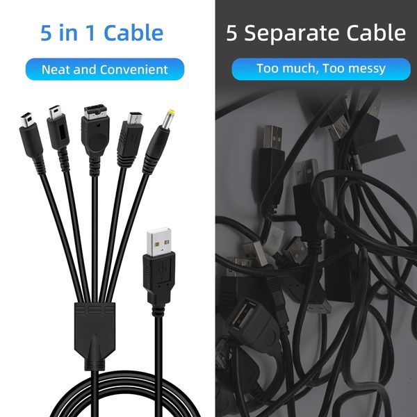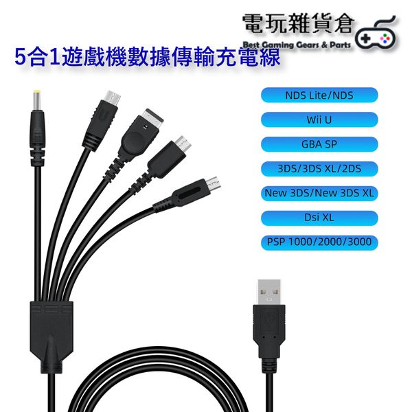 5合1 Nintendo DS/DSL/DSi XL/New 3DS/New 3DS XL/3DS/3DS XL/2DS/WIiU/GBA SP/PSP3000/2000/1000 數據傳輸充電線