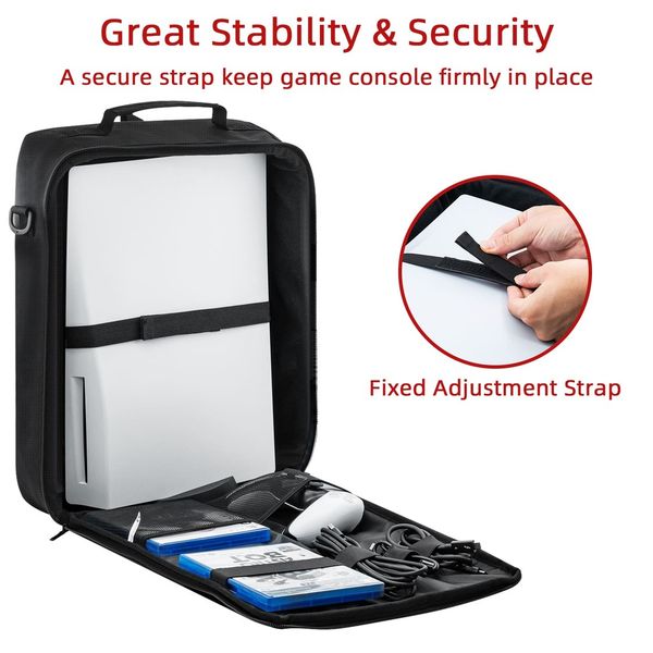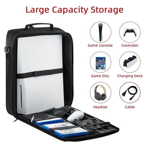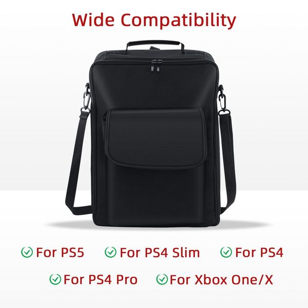 - 這款多用途手提遊戲主機收納包,容量大,可存放 PS5/PS5 Pro/PS4 Slim/Pro/Xbox Series S/Xbox One X/Xbox One S遊戲機和控制器。附可收納遊戲光盤、線材和小配件的內網袋,可拆卸隔板、鬆緊帶和厚墊有助於將物品保持在良好位置並防止震動和劃傷。
