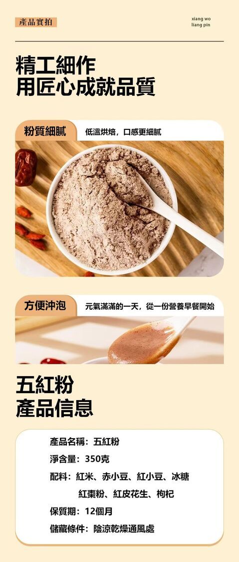 紅棗枸杞粉 五紅粉 即食五紅湯 紅米、枸杞、紅皮花生養生粉 350克 /罐 補氣養血、紅潤面色、增強體力
