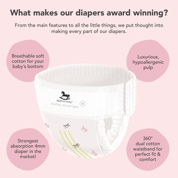 Applecrumby 所有尿布均使用 100% 無氯漿料。然而,少數寶寶可能無法使用完全植物性尿布。如果您的寶寶出現不適或其他反應,請停止使用並在必要時諮詢當地醫生。請記住,尿布疹通常不會嚴重,並且在適當護理下通常在 3–4 天內會好轉。如果在 4–7 天內沒有改善或惡化,請向醫生諮詢。否則,寶寶和父母應該很快會感覺情況好轉。