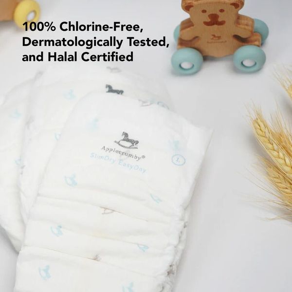 Applecrumby 所有尿布均使用 100% 無氯漿料。然而,少數寶寶可能無法使用完全植物性尿布。如果您的寶寶出現不適或其他反應,請停止使用並在必要時諮詢當地醫生。請記住,尿布疹通常不會嚴重,並且在適當護理下通常在 3–4 天內會好轉。如果在 4–7 天內沒有改善或惡化,請向醫生諮詢。否則,寶寶和父母應該很快會感覺情況好轉。