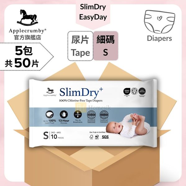 Applecrumby-[原箱優惠] SlimDry+ 嬰兒100%無氯紙尿片 - 細碼 10片 x 5包