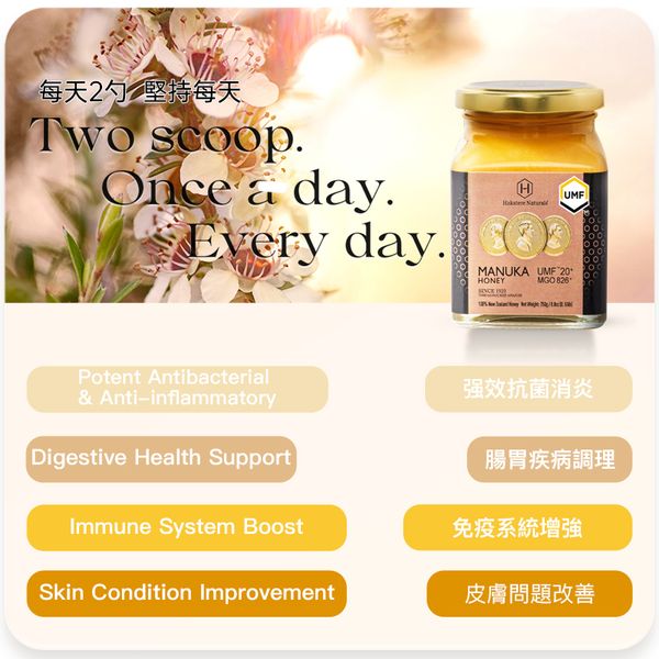 【新西蘭原裝进口-送護手霜】荷塔威-UMF 20+250g*1麥盧卡蜂蜜保健腸胃抑制幽門螺旋桿菌提升免疫力護理傷口送礼蜜糖送試吃裝manuka honey(平行進口)