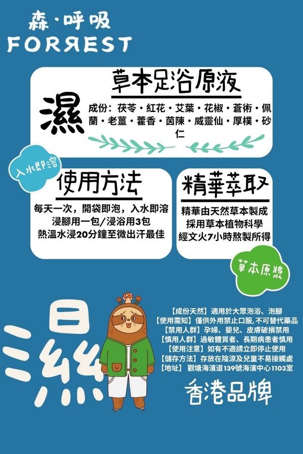 茯苓・紅花・艾葉・花椒・蒼術・佩蘭・老薑・藿香・茵陳・威靈仙・厚樸・砂仁