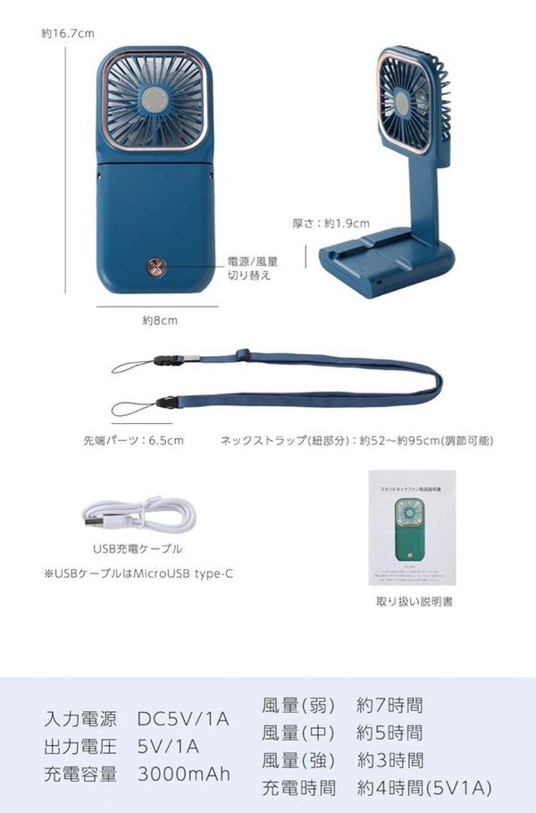 ✅ 多功能合一:具備手持、頸掛、台式風扇功能和手機支架功能。