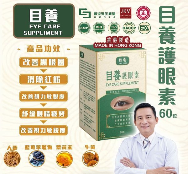 人蔘,牛黃,丹蔘,決明子,茺蔚子,卵磷脂,藍莓素,葉黃素,玉米黃素,葉酸,維生素A,維生素B6,維生素B12及維生素C