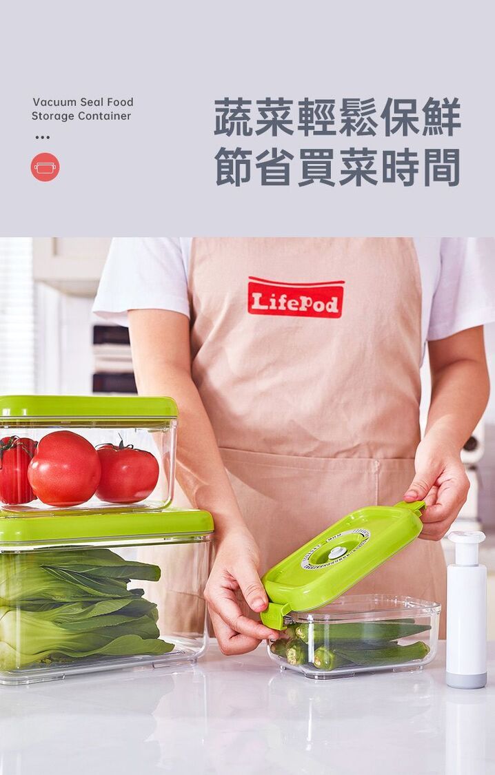 LifePod-抽真空保鮮盒1.5L+2L 贈送手動抽氣泵 真空密封食物盒 咖啡豆防氧化收納盒 便攜外帶水果便當盒