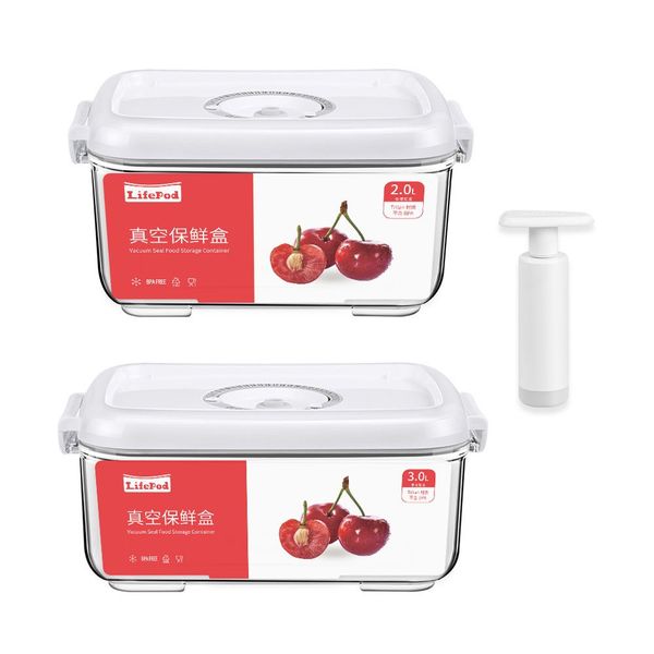 LifePod-抽真空保鮮盒2L+3L贈送手動抽氣泵 透明Tritan材質食物盒收納盒 冰箱蔬果儲物盒